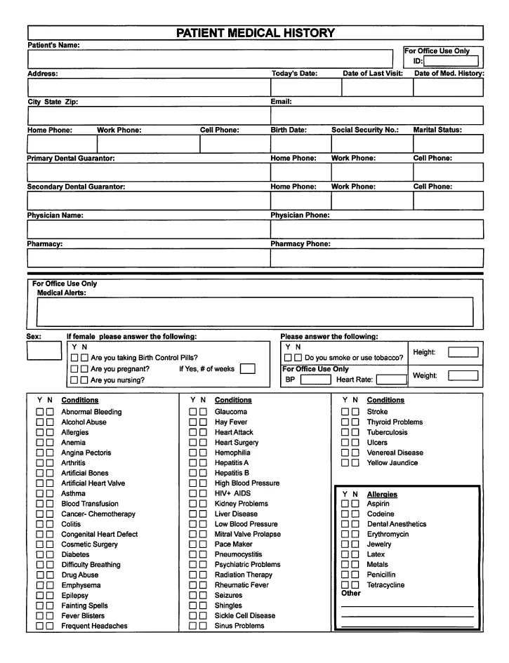 Medical History Form (for our New Patients)